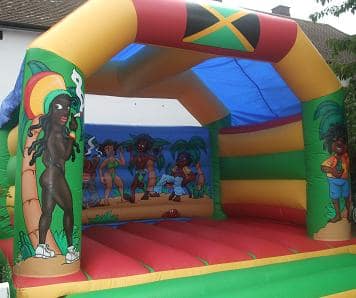 Rastafarian Beach Party. An adult castle 16ft wide x 16ft back to front of step x15ft high.