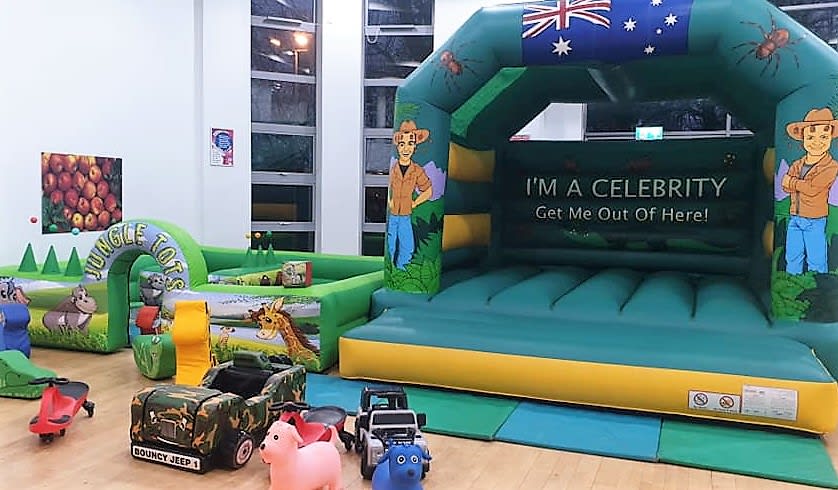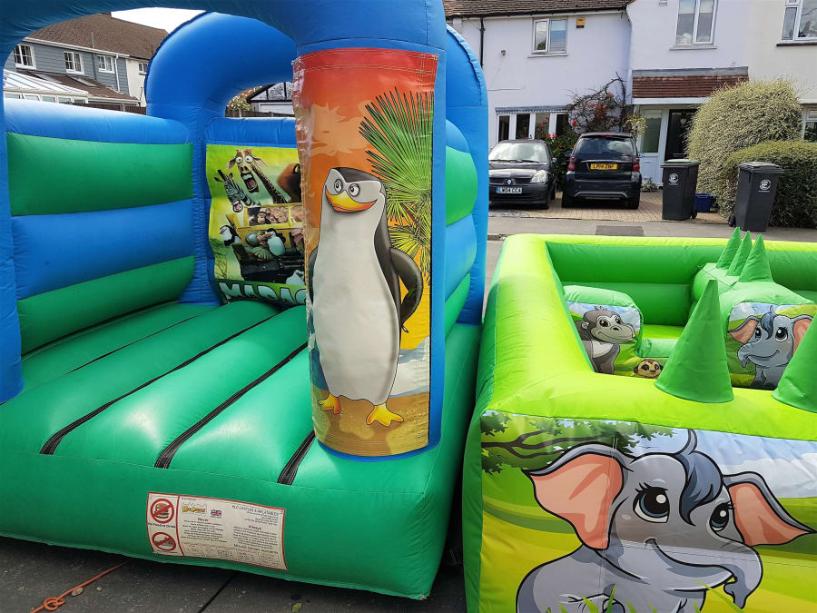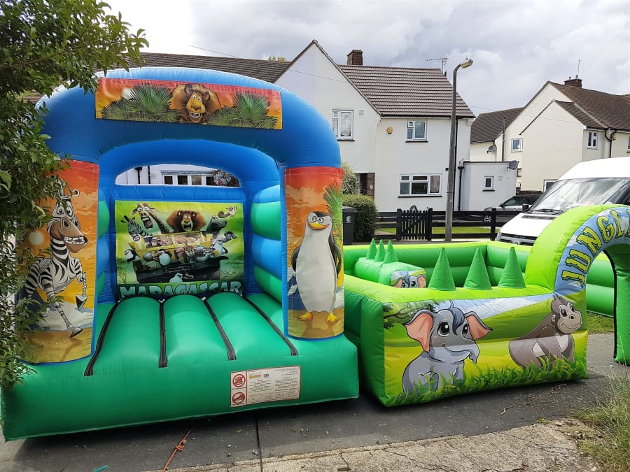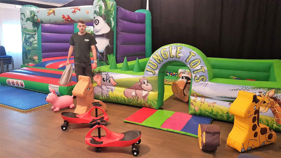 13ft wide x 15ft deep inflatable soft play surround, integral ball pond with air jets. Supplied with 7ft x 8ft bouncy castle or 11ft x 13ft bouncy castle (Jungle theme or any theme of your choice. Soft play mats, and ten pieces of large jungle soft play and 4 happy hoppers.