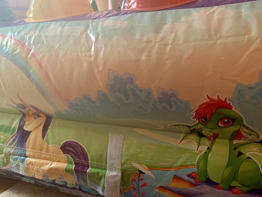 Large Unicorn 8ft x 6ft ball pond filled with commercial play balls and 4 air jets to float balls on each side wall.