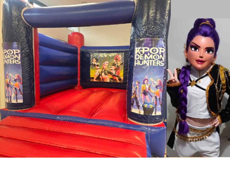 PICTURE ILLUSTRATED IS A 18FT WIDE (INCLUDES SIDE SLIDE) X 15FT DEEP AND IS AVAILABLE IN Pink/Purple or Red/Blue = £160
