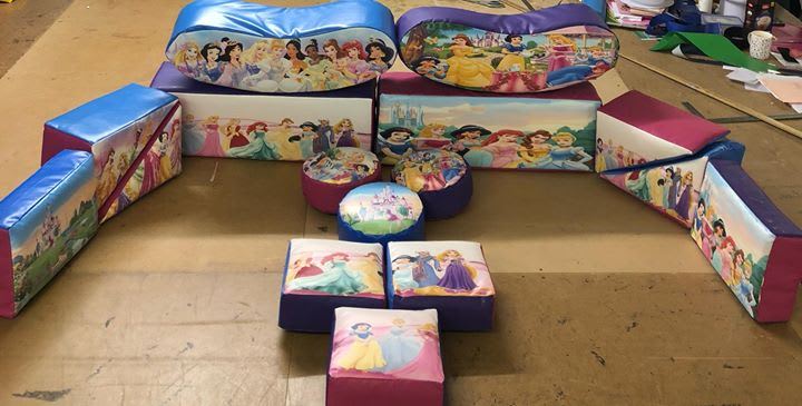 SPECIAL 16 piece Princesses soft play set of shapes on large 12ft mat with bouncy castle = £130