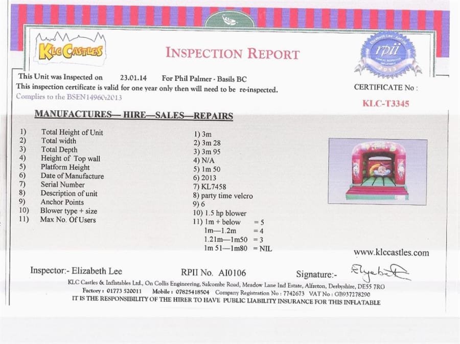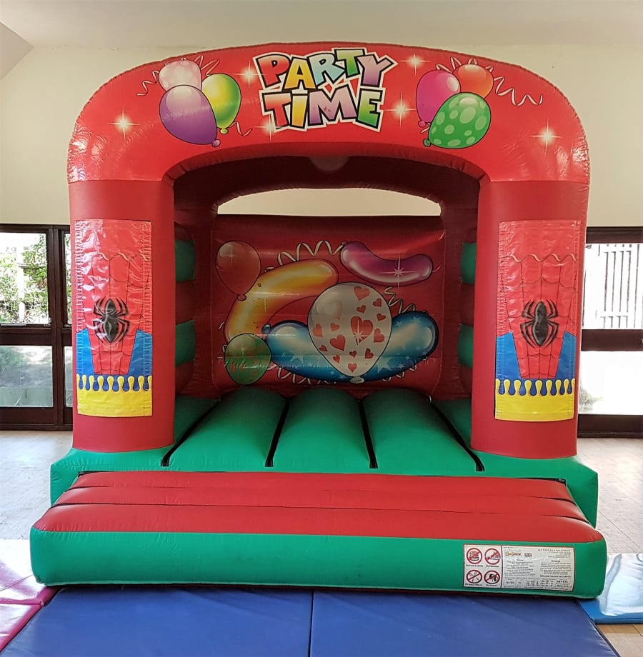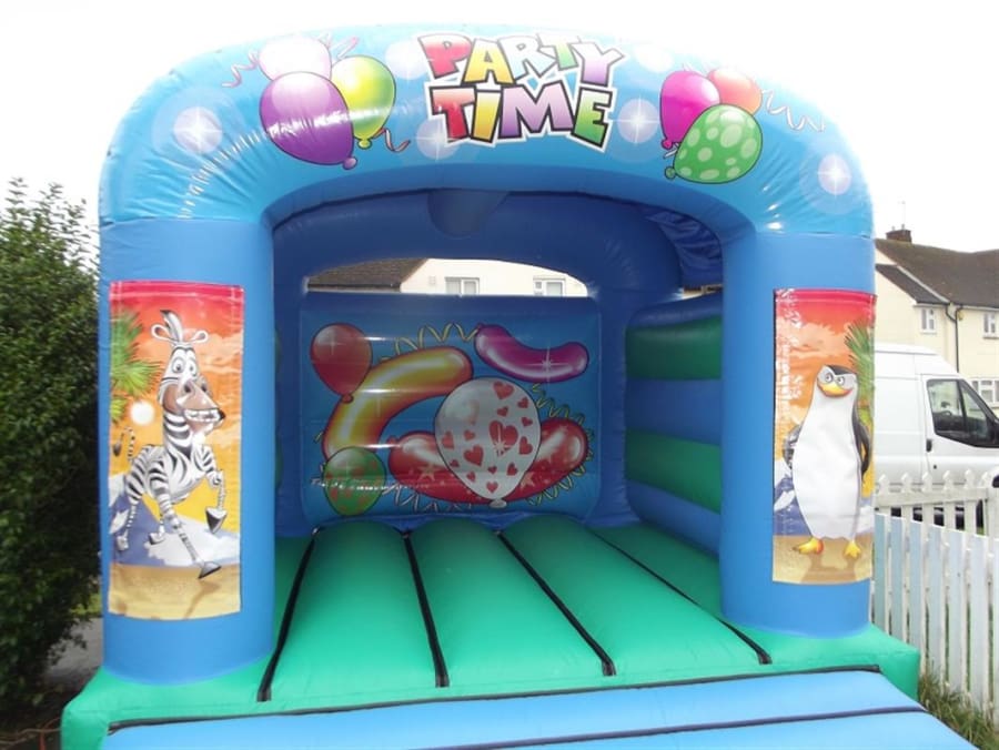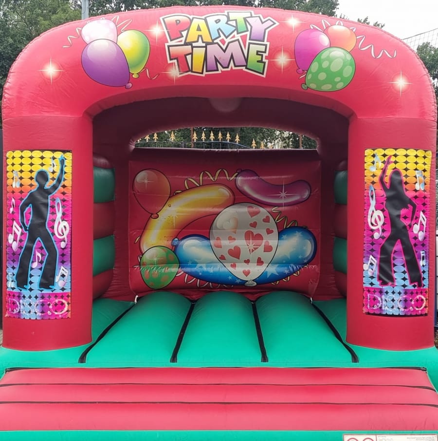 Party Time Themed bouncy castle with any artwork seen available on our website fixed to the columns