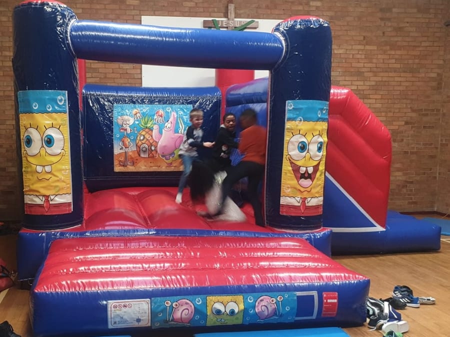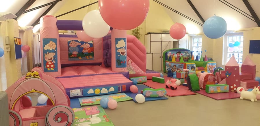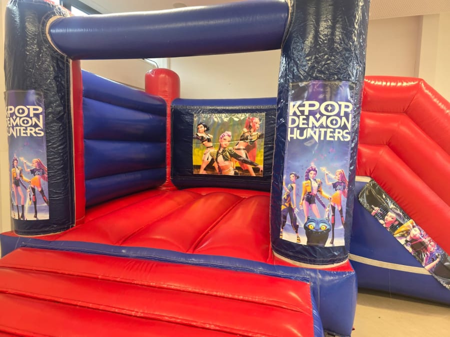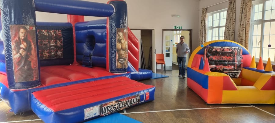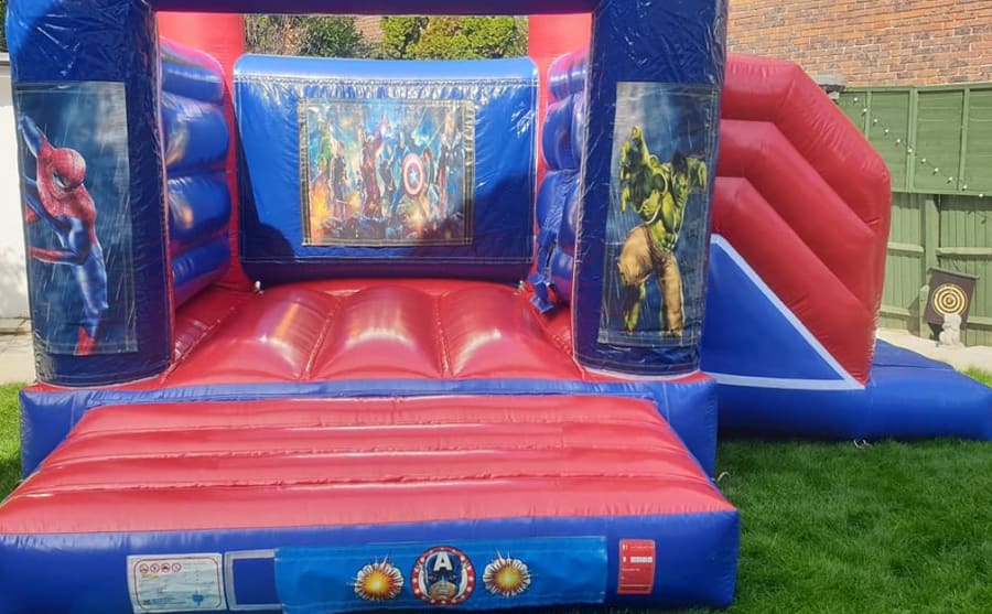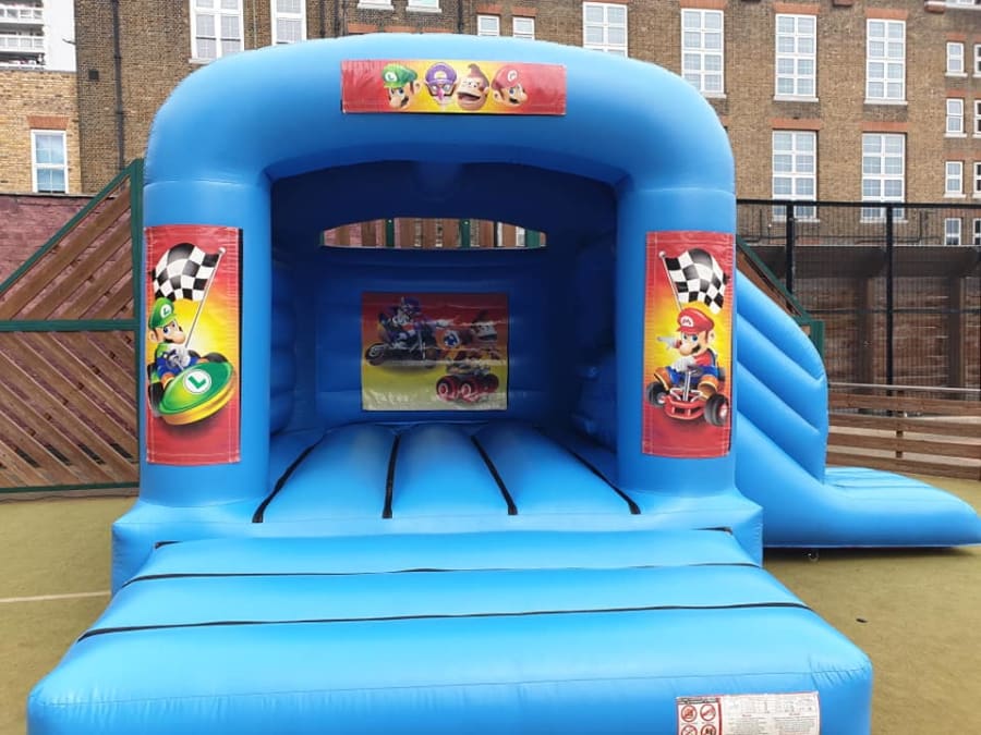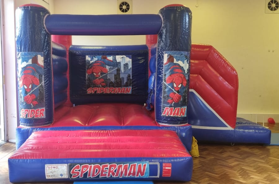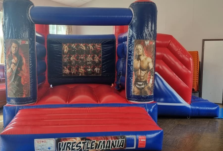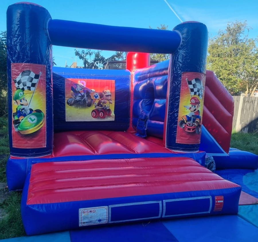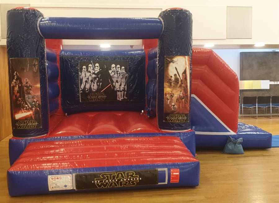 Red/Blue Side Slide 16ft 4" wide (including slide) x 14ft deep x 8ft 5" high (will fit any low ceiling room)