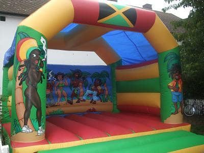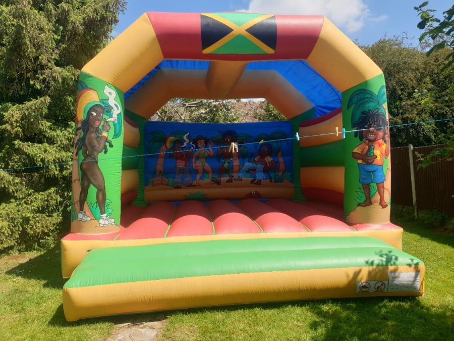Rastafarian Beach Party. An adult castle 16ft wide x 16ft back to front of step x15ft high.