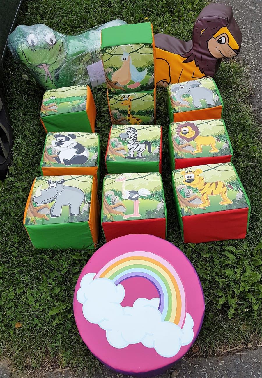 2 large pieces of softplay and 8 pieces of smaller softplay on large mat