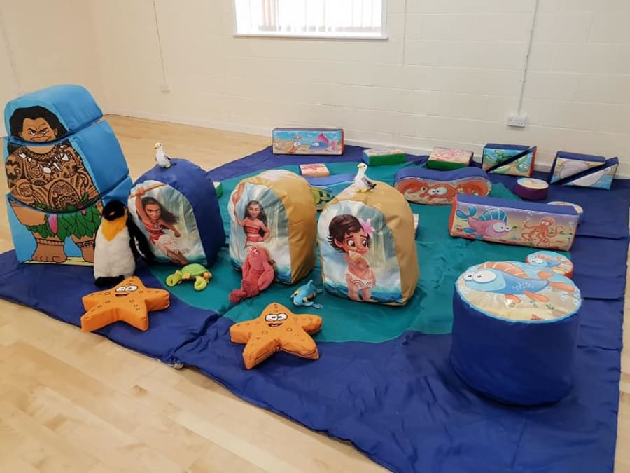 Large 3ft Moana (3 pieces) on large blue mat 12ft x 12ft