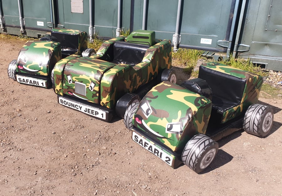 Large Safari Jeep Bouncy Jeep 1 = £40 and 2 smaller Safari Jeeps Safari 1 and 2 = £25 each