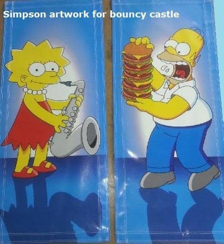 Simpsons Bouncy castle + Bart lookalike mascot costume, delivered and collected with castle = £120
