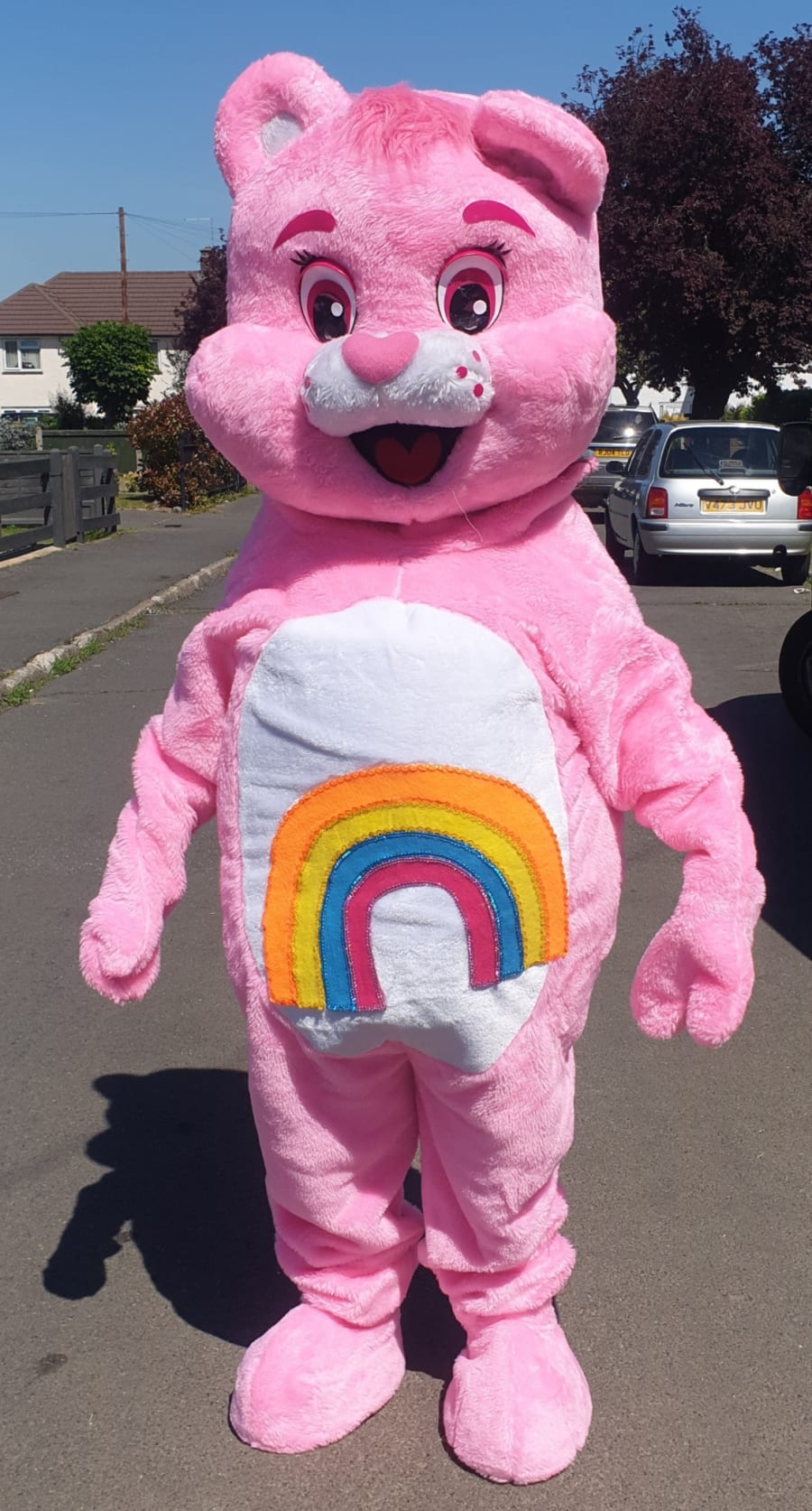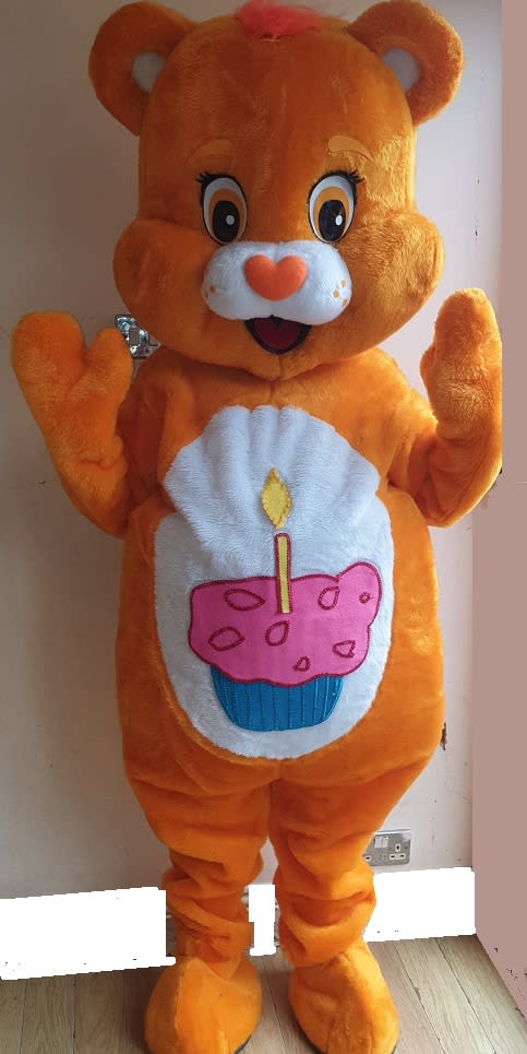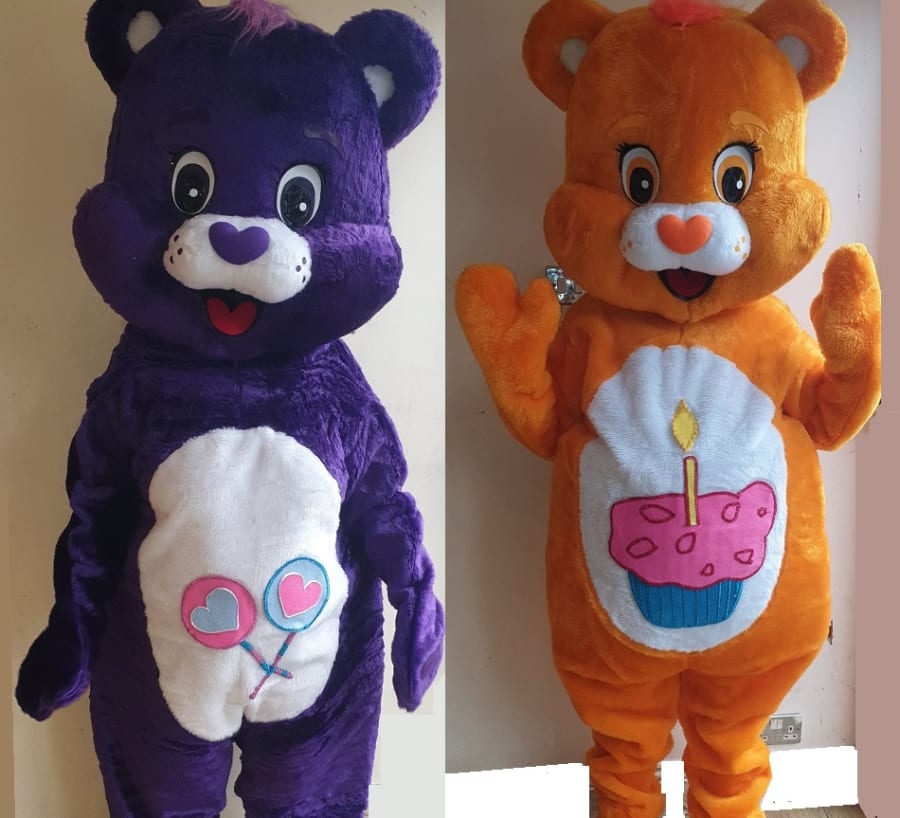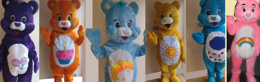 6 Care Bear mascots available:Grumpy, Funshine, Share, Wish, Cheer and Birthday.