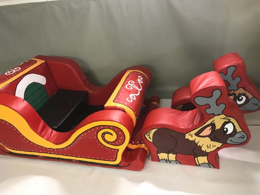 Santa's Sleigh 5ft long x 3.6ft wide plus two reindeer 2.6ft long x 2.6ft high x 10" wide (allow 8ft for complete package)